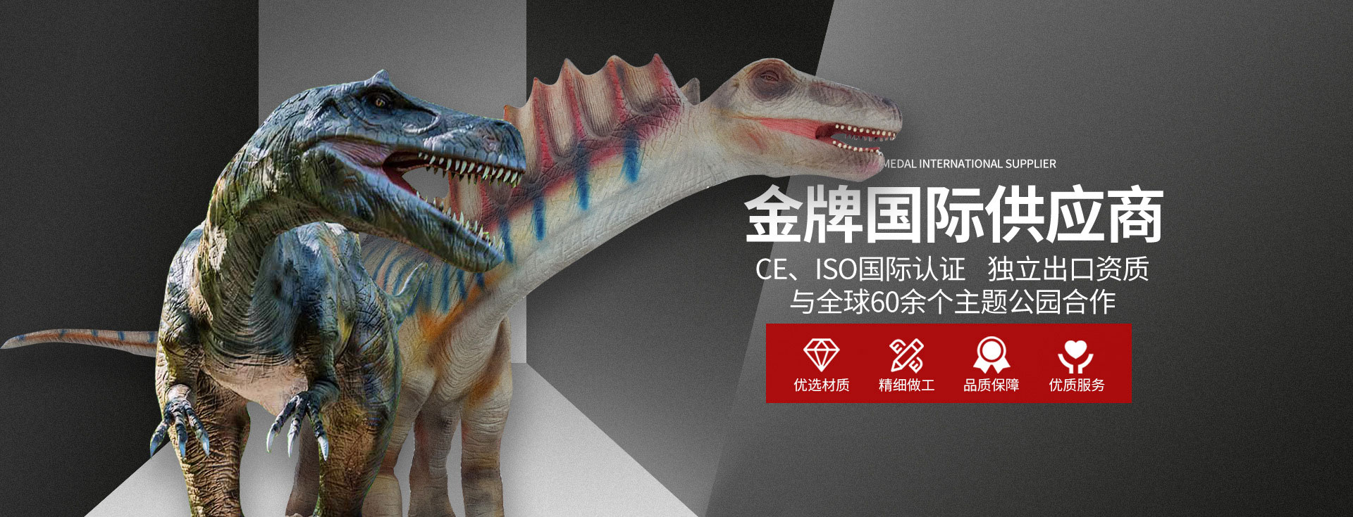 自貢市大洋藝術有限責任公司簡介自貢市大洋藝術有限責任公司,為中國恐龍展品制作基地,成立于2009年,是專業從事恐龍化石骨架標本模型、仿真活體機器恐龍、仿真雕塑恐龍、玻璃鋼恐龍、恐龍游樂場互動設備等展品的研制開發、出售和展覽的高科技企業。并在中國古生物專家的指導下進行開發制作恐龍和仿真動物展品,所制作的恐龍展品,被中國科學院鑒定為“優秀科研作品”,被譽為“侏羅紀”的再現者。公司占地面積30000平方米,有一支專業研制恐龍標本模型和機器恐龍展品的職工隊伍和一套具有先進性能的生產設備,年生產能力為500萬美元,其中約70%的出口。我們研制和生產的恐龍展品,以其造型逼真、表皮質感強、動作協調自如、組合情節科學、價格合理、售后服務佳而倍受國內外客戶的青睞和好評。十多年來,我們先后為美國、加拿大、阿根廷、秘魯、匈牙利、奧地利、荷蘭、澳大利亞和我國的香港、臺灣地區以及北京自然博物館、天津自然博物館、上海自然博物館、重慶自然博物館、浙江自然博物館、成都理工大學博物館、太原中國煤炭博物館、內蒙二連浩特恐龍博物館、武漢中國地質大學博物館、西峽恐龍蛋博物館、朝陽鳥化石博物館、河源恐龍博物館、常州中華恐龍園、云南祿豐世界恐龍谷等地區的博物館和恐龍主題公園以及人民公園制作和提供了相當數量的恐龍展品。同時,先后為重慶恐龍公園、海南恐龍公園、晉江新世紀恐龍公園、番禺古生物博物館、東莞古生物博物館、西峽恐龍蛋博物館設計和陳列布展。