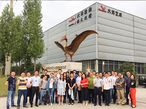 自貢市大洋藝術有限責任公司簡介自貢市大洋藝術有限責任公司,為中國恐龍展品制作基地,始建于1996年,是專業從事恐龍化石骨架標本模型、仿真活體機器恐龍、仿真雕塑恐龍、玻璃鋼恐龍、恐龍游樂場互動設備等展品的研制開發、出售和展覽的高科技企業。并在中國古生物專家的指導下進行開發制作恐龍和仿真動物展品,所制作的恐龍展品,被中國科學院鑒定為“優秀科研作品”,被譽為“侏羅紀”的再現者。公司占地面積10000平方米,有一支專業研制恐龍標本模型和機器恐龍展品的職工隊伍和一套具有先進性能的生產設備,年生產能力為400萬美元,其中約70%的出口。我們研制和生產的恐龍展品,以其造型逼真、表皮質感強、動作協調自如、組合情節科學、價格合理、售后服務佳而倍受國內外客戶的青睞和好評。十多年來,我們先后為美國、加拿大、阿根廷、秘魯、匈牙利、奧地利、荷蘭、澳大利亞和我國的香港、臺灣地區以及北京自然博物館、天津自然博物館、上海自然博物館、重慶自然博物館、浙江自然博物館、成都理工大學博物館、太原中國煤炭博物館、內蒙二連浩特恐龍博物館、武漢中國地質大學博物館、西峽恐龍蛋博物館、朝陽鳥化石博物館、河源恐龍博物館、常州中華恐龍園、云南祿豐世界恐龍谷等地區的博物館和恐龍主題公園以及人民公園制作和提供了相當數量的恐龍展品。同時,先后為重慶侏羅紀公園、海南侏羅紀公園、晉江新世紀恐龍公園、番禺古生物博物館、東莞古生物博物館、西峽恐龍蛋博物館設計和陳列布展。
