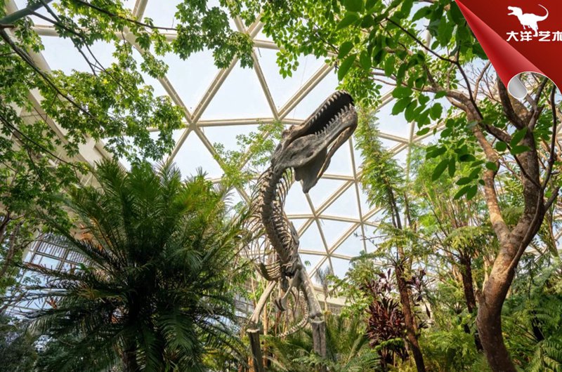 此次活動的植物館建筑分為三層,一層設有熱帶植物溫室,占地約3000平方米,匯聚600多種珍貴植物。我司在展館中展示的巨型仿真恐龍骨架在周圍珍惜植物的映襯下顯得栩栩如生,給人仿佛回到侏羅紀的視覺沖擊感!展館通過一系列高科技創意手法,向參觀者充分展示“植物的智慧”,呼喚人類保護植物,關愛地球,關注人類的未來。