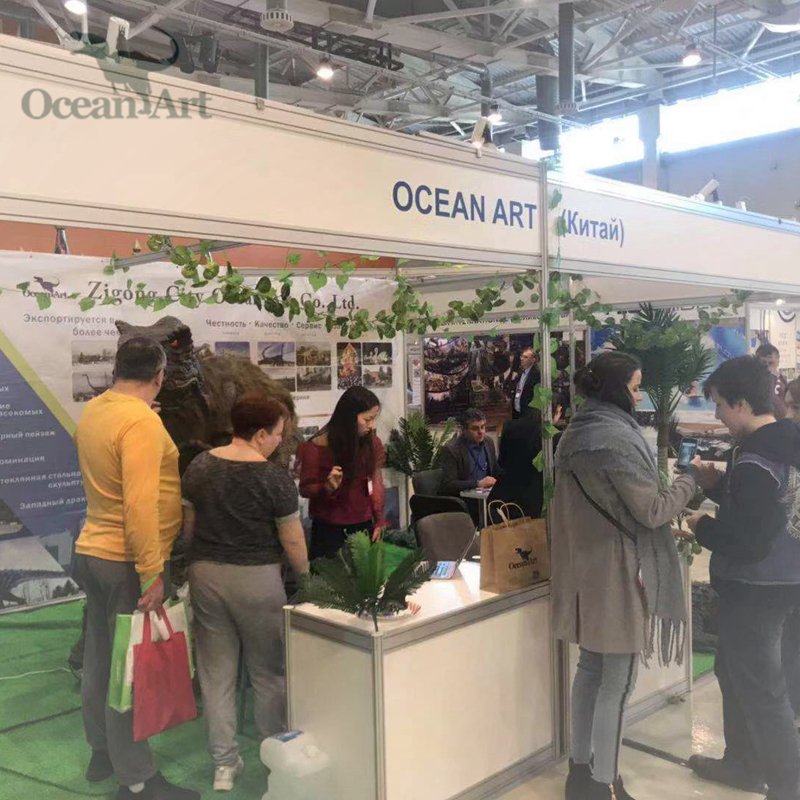 2019年3月13日~15日,我司亮相俄羅斯展會。在為期3天的展會中,公司各工作人員付出了辛勤的勞動,收獲頗豐。現場參觀人員絡繹不絕,看到栩栩如生的恐龍展品,他們紛紛驚嘆我司精湛的手藝,這引得不少外賓新老客戶駐足合影留念。通過與外賓客戶的交流與互動,我司產品質量取得了外賓朋友的一致認可。在這場展會中,我司不僅向世界推廣了公司產品,更弘揚了中國博大精深的恐龍文化!
