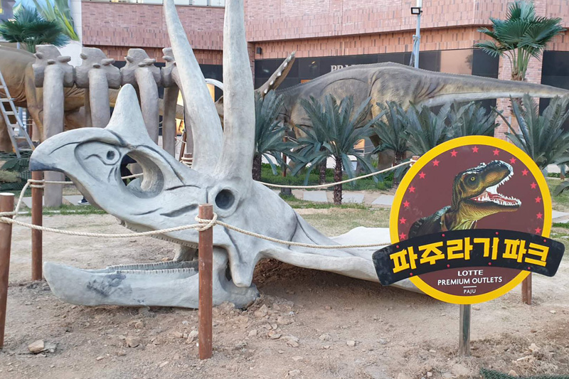 客戶自行安裝三角龍恐龍頭骨雕塑