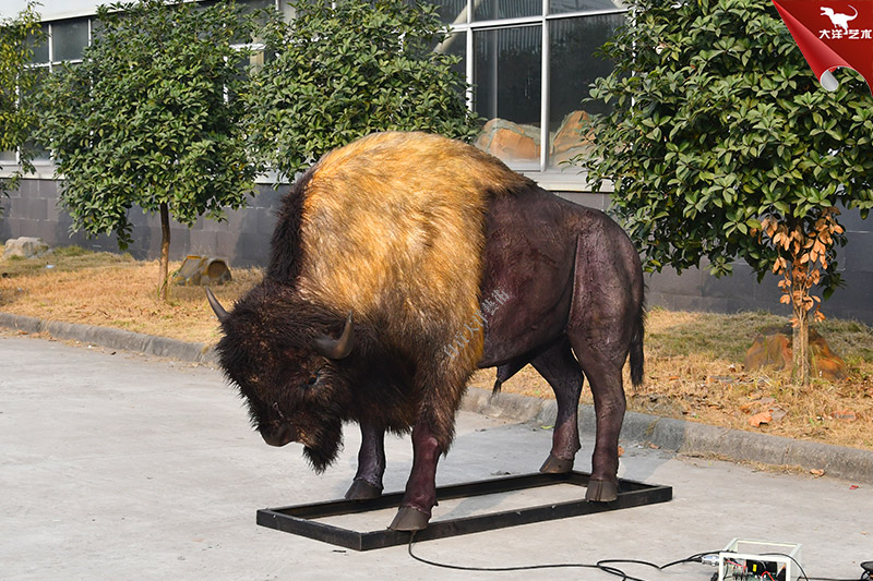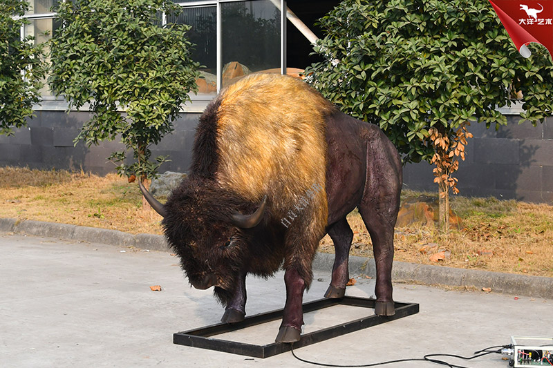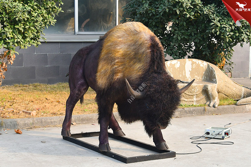 仿真野牛,1:1等比例還原,純手工粘毛制作,造型逼真,能動會叫。主要用于景區、商場、和商業展覽等