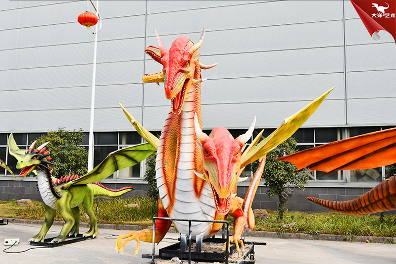 西方龍仿真模型 三頭龍模型定制,能動會叫,造型逼真,景區 商場 游樂園和主題公園吸引游客神器!