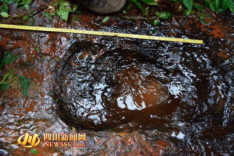 隨后,專家組對大石鄉新陽村桫欏溝恐龍足跡進行考擦,龍井和新陽兩地相距直線距離約1500米。繼上次發現獸腳類恐龍的巖石上,再次發現蜥腳類恐龍。“這里保存著極好的獸腳類恐龍行跡。”獸腳類恐龍是一種兇猛的肉食性恐龍,是當地發現的蜥腳類足跡和鳥腳類足跡的造跡者的天敵。從足