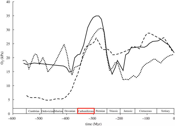 巔峰時期,地球大氣的氧含量可能達到35%*,遠比今天的大氣21%的氧含量要高得多。