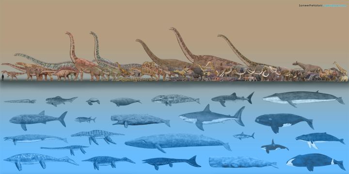 就像當年蜥腳類恐龍那樣迅速巨大化,藍鯨找到了比蜥腳類恐龍更加高效率的生存方式,甚至低效的呼吸系統都不會成為瓶頸。