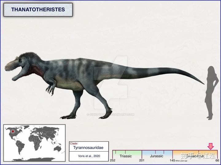經(jīng)過了兩年的研究,沃里斯發(fā)現(xiàn)這真的是一個(gè)全新的物種!這令加拿大的古生物學(xué)家們都激動(dòng)不已,因?yàn)檫@是50年來加拿大發(fā)現(xiàn)的第一種新暴龍科恐龍,也是加拿大發(fā)現(xiàn)的第五種暴龍科(此前發(fā)現(xiàn)了霸王龍,懼龍,艾伯塔龍和蛇發(fā)女怪龍)。“世界上很少能有國家一次性擁有五種暴龍科,這足夠讓我們吹好一陣子了!”皇家泰勒爾古生物學(xué)博物館的恐龍古生態(tài)學(xué)館長弗朗索瓦·塞里恩(FrancoisTherrien)非常自豪的說到。
