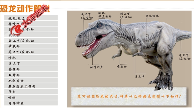 備注: 我們所制作的仿真恐龍展品和骨架模型展品被中國科學院古脊椎所鑒定為“優秀科研作品”被譽為”侏羅紀“的在現者。我們將秉承客戶至上的理念,為客戶設計和制造恐龍展品,并根據客戶的要求提供3年以上質量保證,并長期為客戶提供培訓安裝維修人員和配件等售后服務,為顧客解除了恐龍展品長期使用展覽的后顧之憂。
