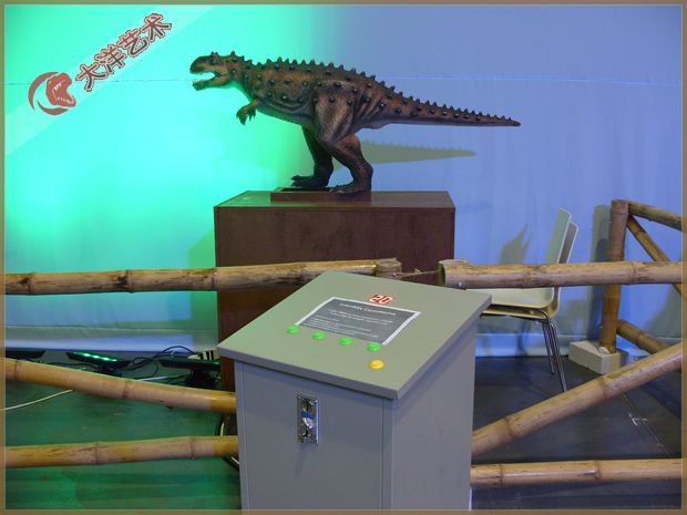 動 作:投幣后觀眾可操作鍵盤,指揮恐龍張嘴叫聲、頭左右、頸上下、前肢擺動、尾左右擺動.