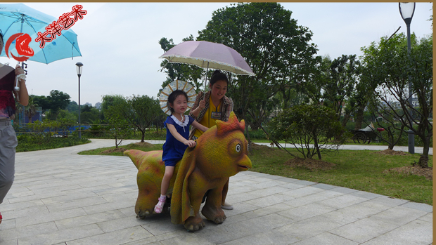 動 作:背上可騎坐小孩隨龍走動娛樂