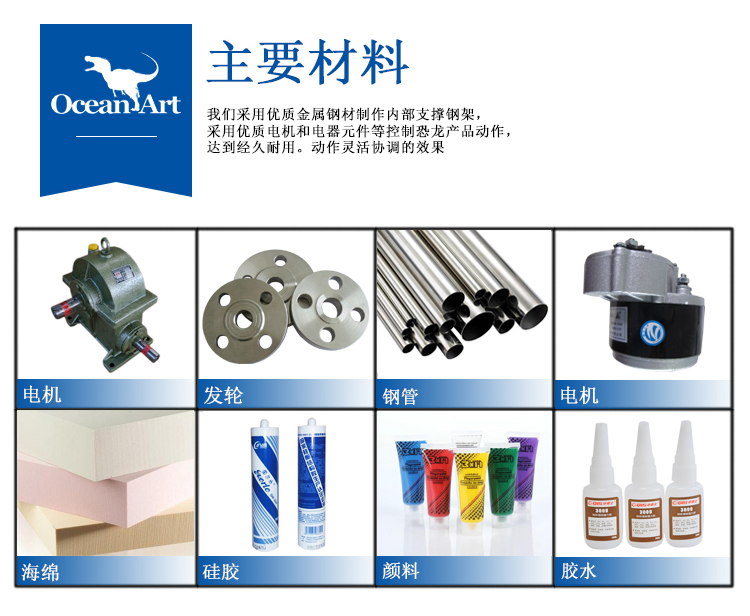 4. 采用優(yōu)質(zhì)電機(jī)和電器元件控制恐龍展品動(dòng)作,達(dá)到經(jīng)久耐用動(dòng)作靈活協(xié)調(diào)的效果。