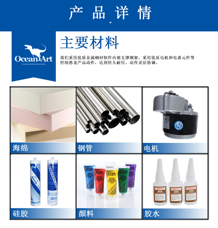 4、采用優質電機和電器元件控制恐龍展品動作,達到經久耐用動作靈活協調的效果。