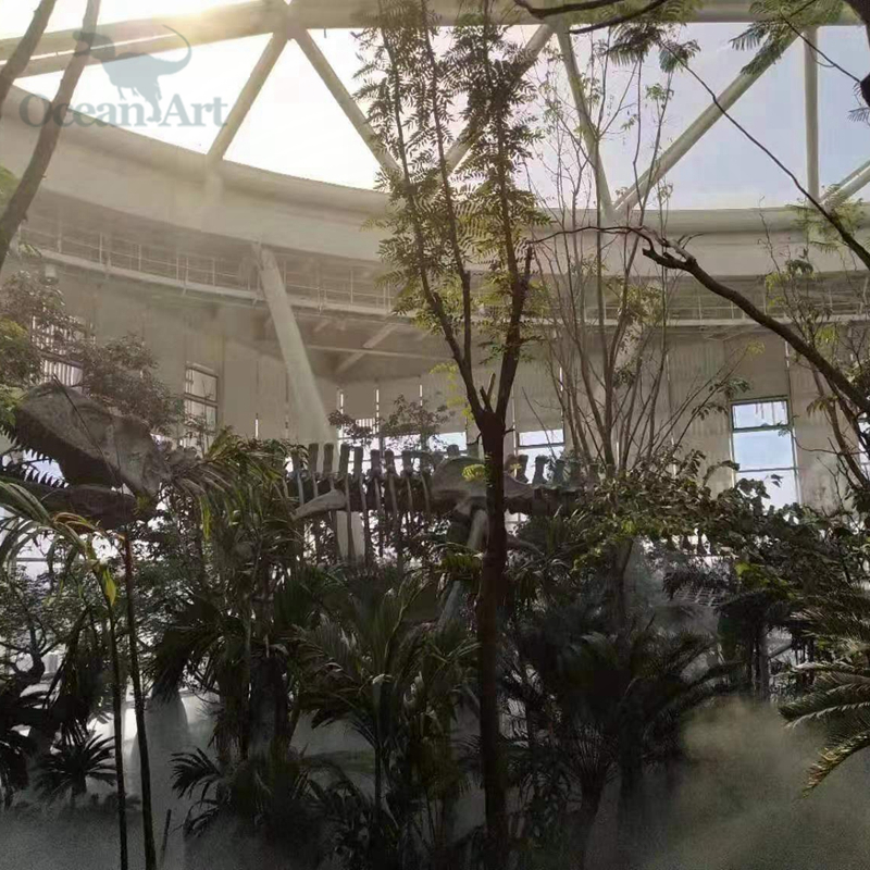 此次活動的植物館建筑分為三層,一層設有熱帶植物溫室,占地約3000平方米,匯聚600多種珍貴植物。我司在展館中展示的巨型仿真恐龍骨架在周圍珍惜植物的映襯下顯得栩栩如生,給人仿佛回到侏羅紀的視覺沖擊感!展館通過一系列高科技創意手法,向參觀者充分展示“植物的智慧”,呼喚人類保護植物,關愛地球,關注人類的未來。