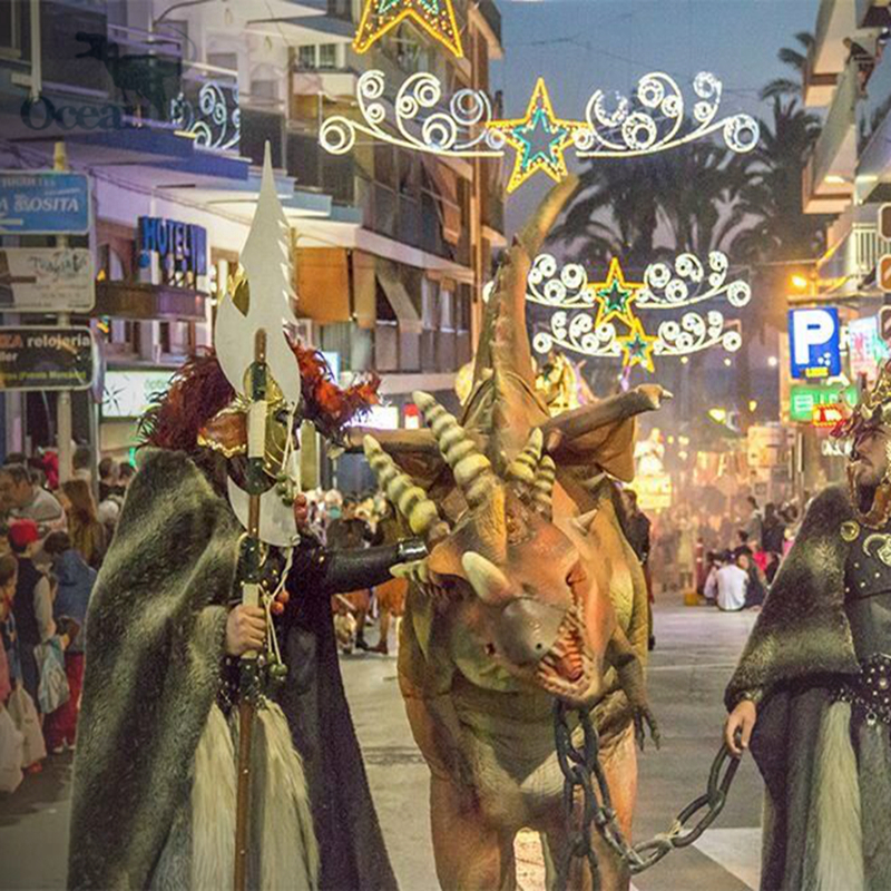 龍是起源于神話的物種,最初代表著神圣和力量。這個夢幻逼真的龍服裝使得我們的朋友在布拉達廣場的游行中大放異彩。讓他們的表演在萬圣節的諸多節目中顯得與眾不同。因為恐龍服裝的輕便,它允許用戶在游行中表演兩個小時,并且不覺得有太多的重量負擔。